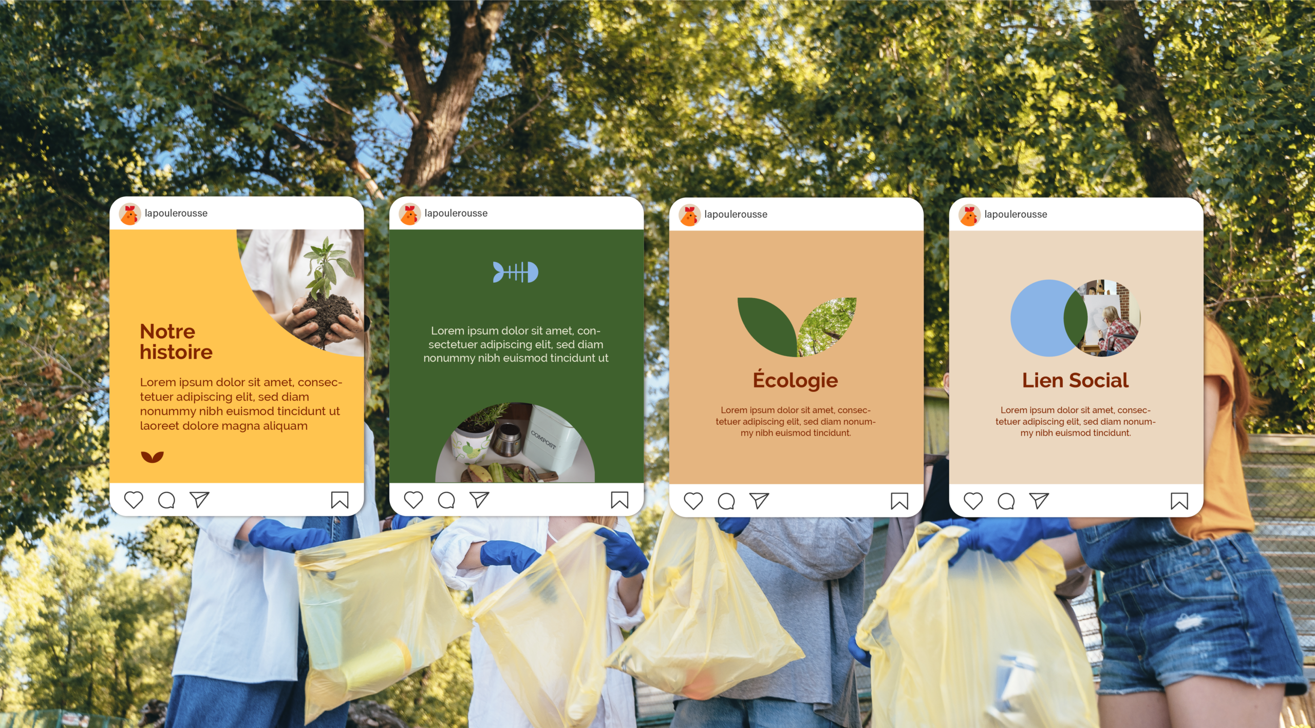 Le Fonds de dotation La Poule Rousse a été créé pour soutenir et encourager des projets à but non lucratif visant à protéger l’environnement et à renforcer le lien social en France et dans le Monde. La poule rousse est un animal de compagnie de plus en plus apprécié dans les foyers français, contribuant à la réduction des déchets et à la sensibilisation environnementale des enfants. Ils sont aussi facteur de lien social, permettant aux voisins d’échanger des œufs, etc. C’était la mascotte parfaite pour ce projet éco-responsable et inclusif. L’identité est ludique, accueillante et moderne, avec l’utilisation de formes géométriques et de couleurs vives.